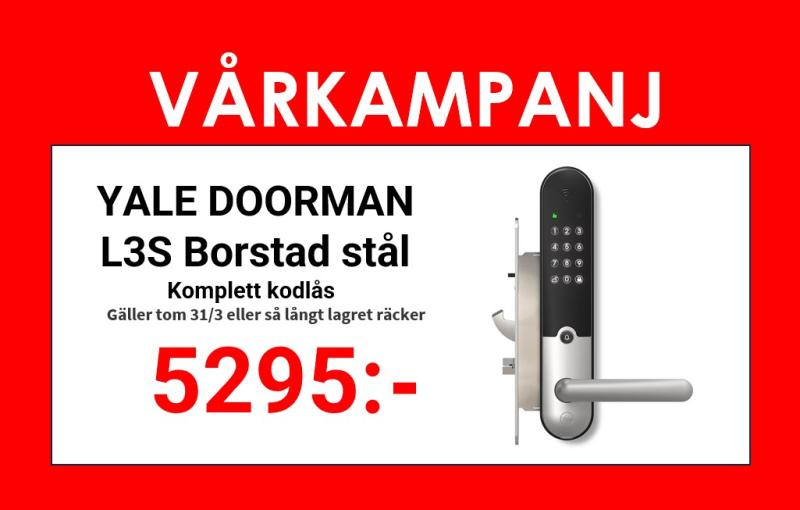 Nya Yale Doorman L3 är kompaktare än sina föregångare. Den har nya knappar och symboler. Stjärna och fyrkant är utbytt mot låssymbol. Inbyggd dörrklocka ger en notis i appen Yale Access. Uppkoppling via Bluetooth möjliggör bekväm funktionalitet, som exempelvis att dörren kan låsas upp när man närmar sig låset med väskor i båda händerna...