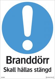 Skylt Branddörr ska hållas stängd A4