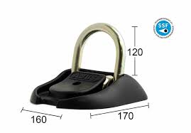 En kraftig golv-/vägghållare i klass 3 för godkänd fastlåsning av cykeln, mopeden, motorcykeln, släpvagnen, husvagnen, båtvagnen med mera. När öglan är nerfälld kan den köras över, även i garage. Uppfälld ger den stora bygeln möjlighet att trä igenom alla kättingar.