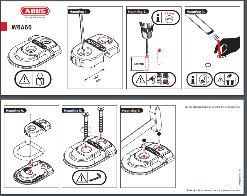 Abus WBA 60 Fästögla, Vägg- och golvankare