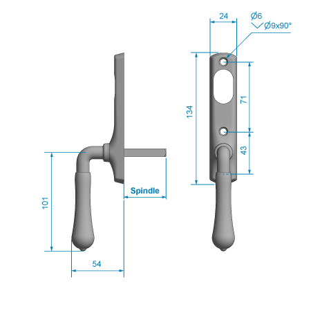 Handtagen passar för enkel eller dubbel montering med låsning cylinder/vred eller cylinder/cylinder.