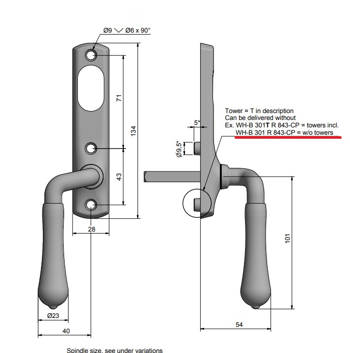 - Handtaget finns vänster, rakt och högersvängt utförande.