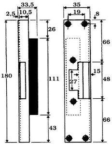 Monteringsstolpe 510 för enkelt elslutbleck. Kan användas i trä-, stål- och aluminiumkarmar samt tillsammans med enkelfallås monterat i dörrbladet.