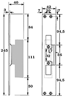 Monteringsstolpe 731-17 för standard elslutbleck. Kan användas i trä-, stål- och aluminiumkarmar samt tillsammans med dubbelfallås monterat i dörrbladet.