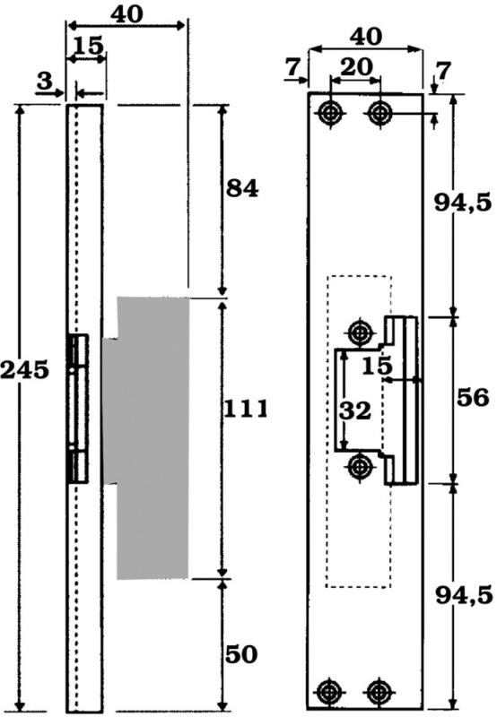 för standard elslutbleck. Kan användas i trä-, stål- och aluminiumkarmar samt tillsammans med enkelfallås med förregling monterat i dörrblade