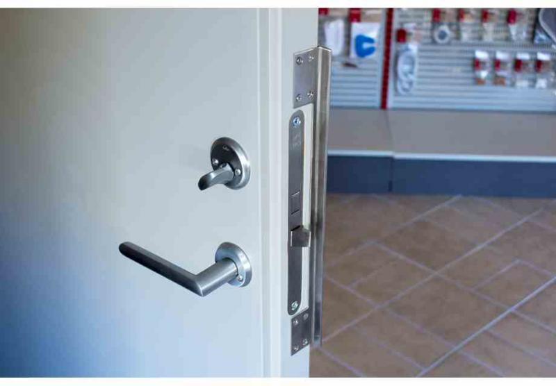 Monteras på dörrens utsida på dörrbladet mellan dörr och karm för att motverka manipulation av låsfallen i låshuset.
