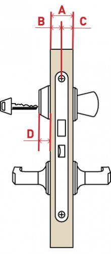 - Dörrar där B- och/eller C-måttet överstiger 27 mm kompletteras med 10 mm cylinderförlängare, mått över 37 mm med två stycken o s v.