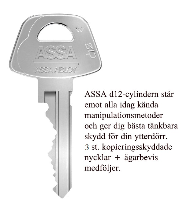- Kan beställas med lika låsning med andra cylindrar i Assa d12 serie
