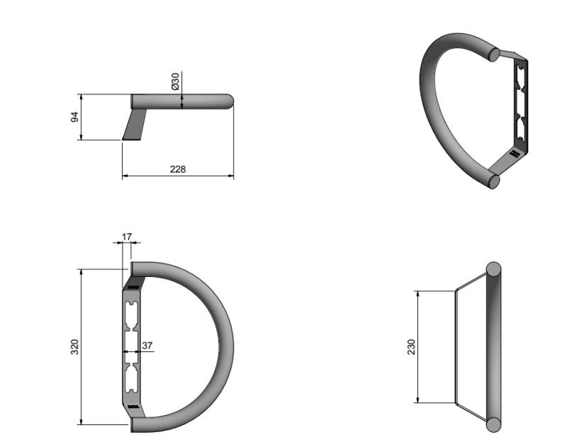 Draghandtag med enkelt montage under smalprofilbehör. Passar smalprofilbehör S3, S4 och säkerhetsbehör SCD.