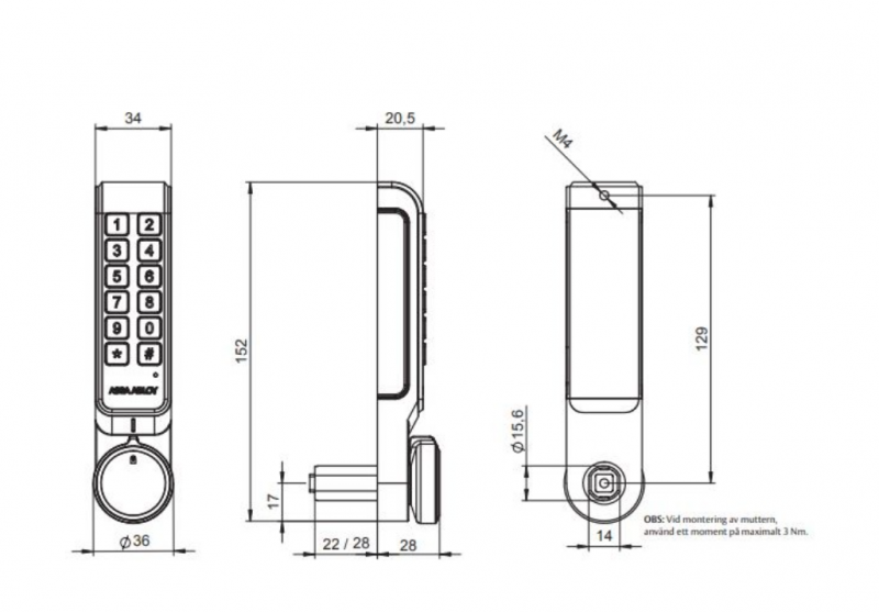 Assa Elektronisk skåplås PIN