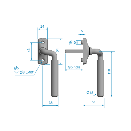 - Handtaget finns vänster, rakt och högersvängt utförande.