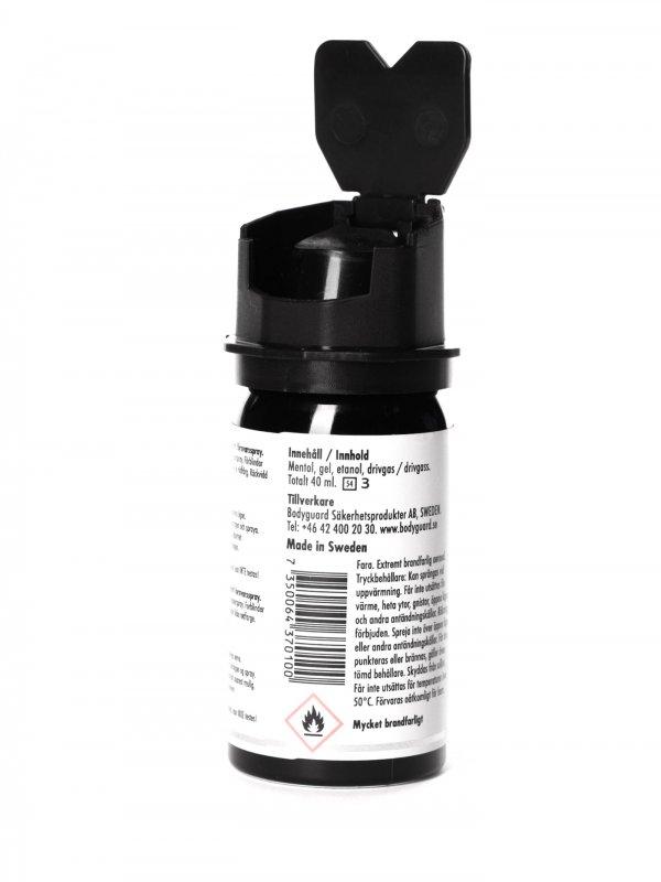 Genom en gel-liknande substans får man “tyngre droppar”, med rätt mängd gel i förhållande till munstycket ger det i sin tur maximal räckvidd, samtidigt som de tyngre dropparna blir mindre känsliga för vind. Substansen skapar också större obehag på angriparen genom att det fäster bättre och blir mer ihärdigt. Sprayen förblindar och ger upphov till stark sveda i ögon och även i ansiktet där den träffar. Högkoncentrerat specialämne skapar ett fruktansvärt obehag. Slår förövaren ur spel kortvarigt så att du kan ta dig till säkerhet och förhindra överfall, rån, misshandel och liknande. Lockets konstruktion är smart utformat för att undvika oavsiktlig sprayning i väskan eller fickan samt underlättar att man sprayar i rätt riktning vid skarpt läge i en stressig situation.