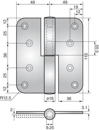 - Urtagsmått karmdel 110 x 36 x 3,1 mm.