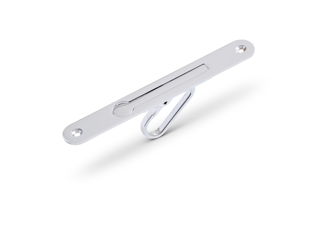 Modernt kanthandtag avsett för invändiga skjutdörrar. I infällt läge är greppet helt dolt.