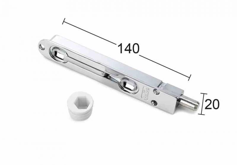 Kantregel av förkromad zink. Låsbussning av vit plast.