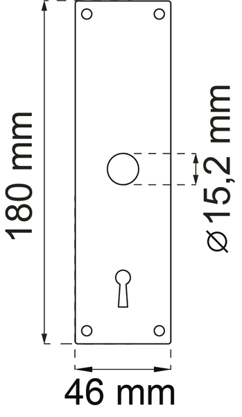Långskylt av pressad mässingsplåt. passar Habo innerdörrs handtag utan rosett.