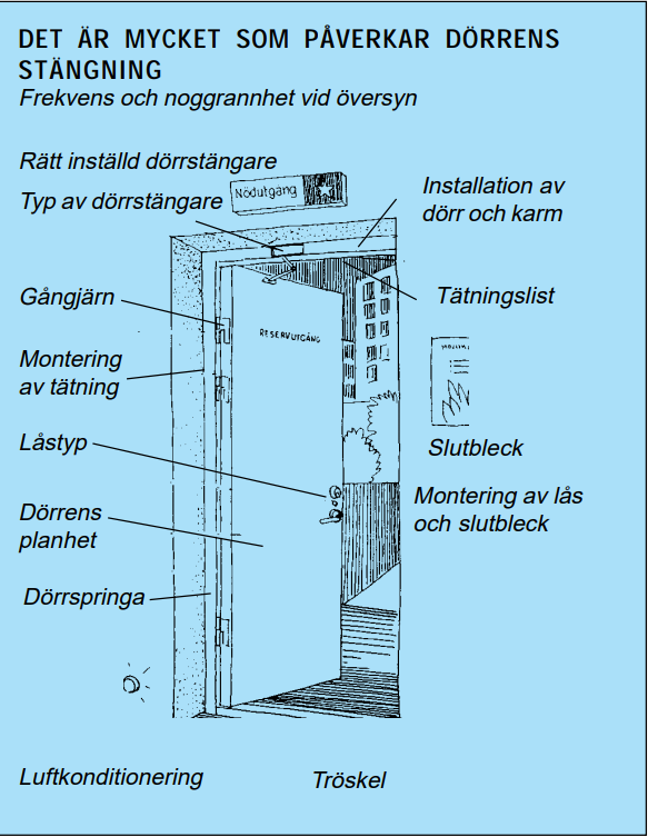Låsenheten Vid den årliga allmänna funktionsgenomgången kontrolleras även åtdragningen av skruvar för låshus, behör, dörrtrycken och slutbleck.
