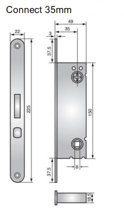 - Cylinder- och förreglingsfall dras in med nyckel eller vred