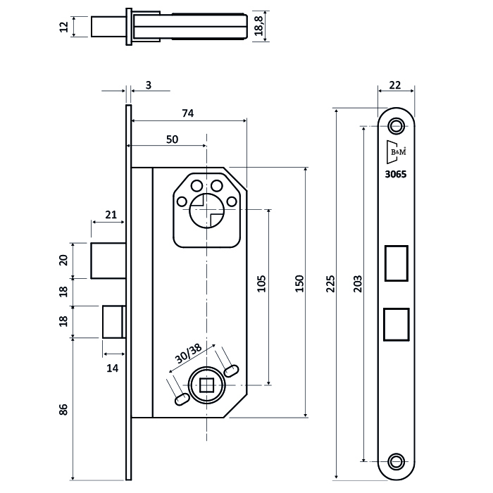Cylinderlås med tryckesfall och regel. 90° nyckelvridning. Låshus för ytter- och innerdörrar, kontorslokaler, industrier etc.