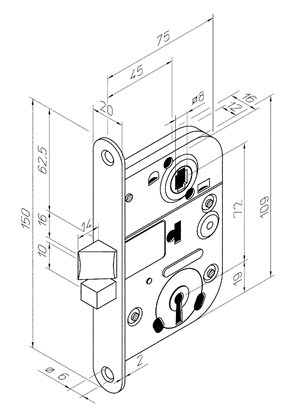 Låshus Tillhållarlås till innerdörrar inkl slutbleck