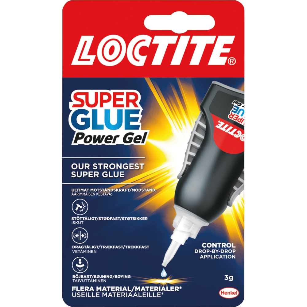 - Super Glue Power Gel – ett lim med en unik gummiförstärkt formula.