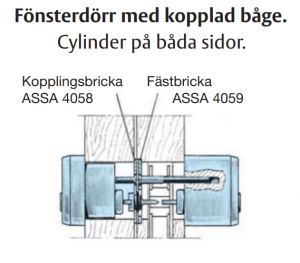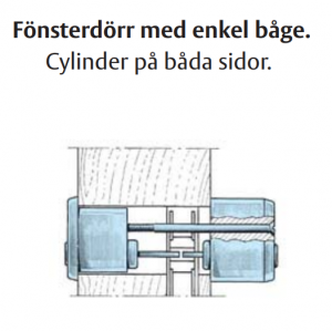 Fönsterdörr med kopplad både, delbar (cylinder från båda hål) :