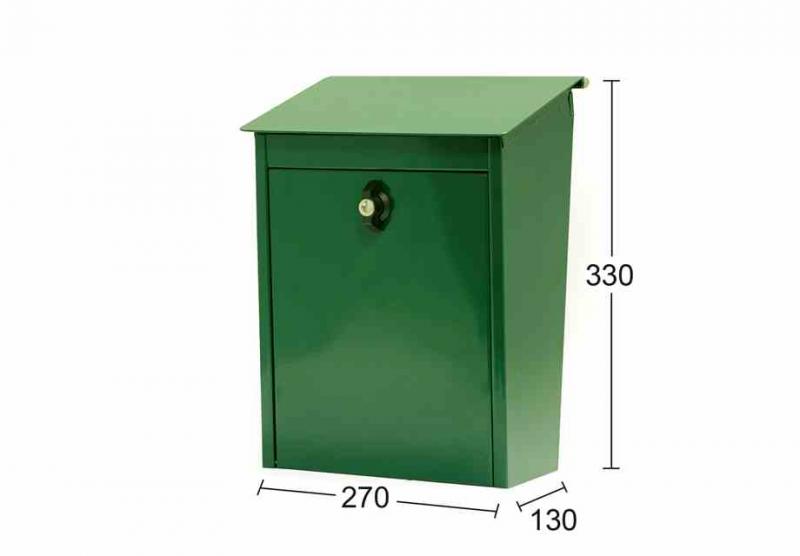 Låsbar postlåda av pulverlackerad aluzinkplåt.