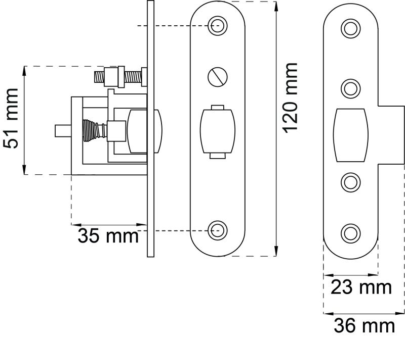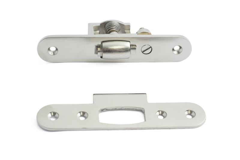Rullås med justerbar tryckrulle. Används till enklare innerdörrar med draghandtag när man vill hålla dörren stängd men inte låst.
