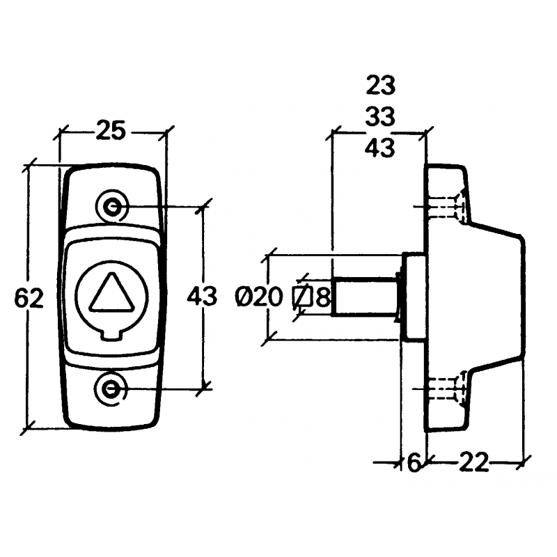 Kring trekanttappen ligger en fjäderbelastad spärrbricka. Denna måste tryckas in till ett preciserat läge för att tappen skall kunna vridas och påverka spanjoletten.