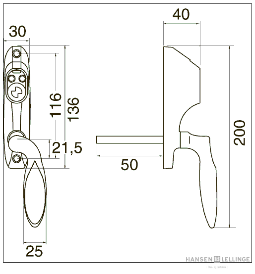 - Låses genom nyckelvridning med cylinder 1201 (ingår ej).