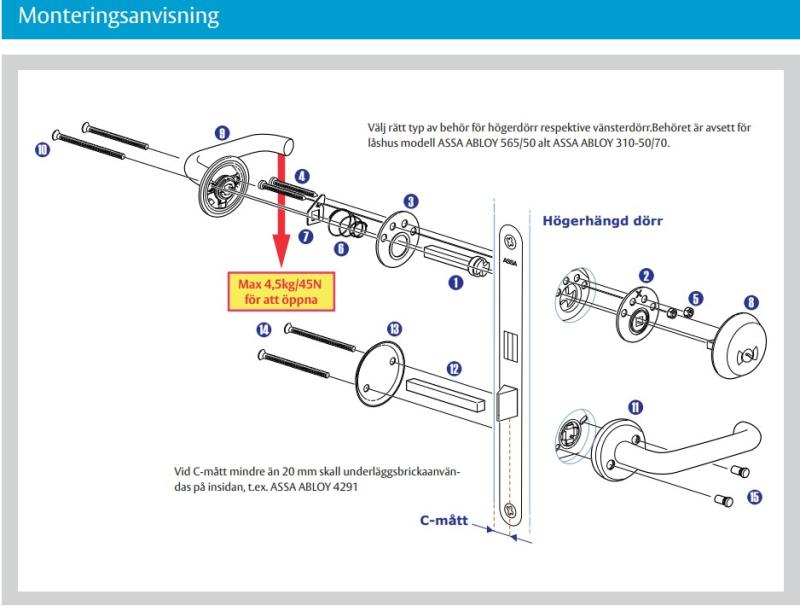 - Passar till låshus 565 och 310-50, Trycke 6616 på utsida dörr