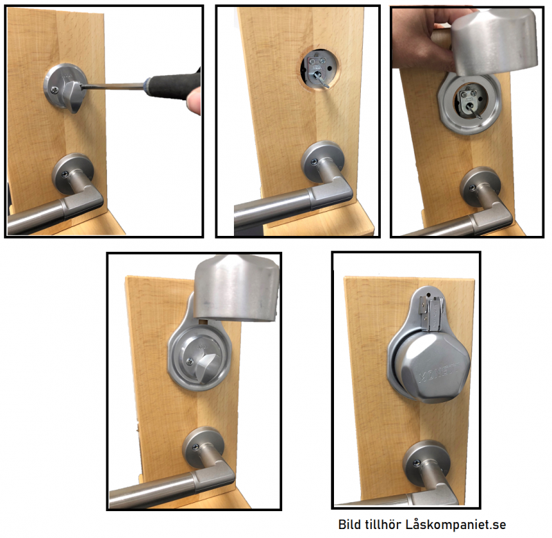 Monteras under cylindervredet, utan inverkan på dörren.