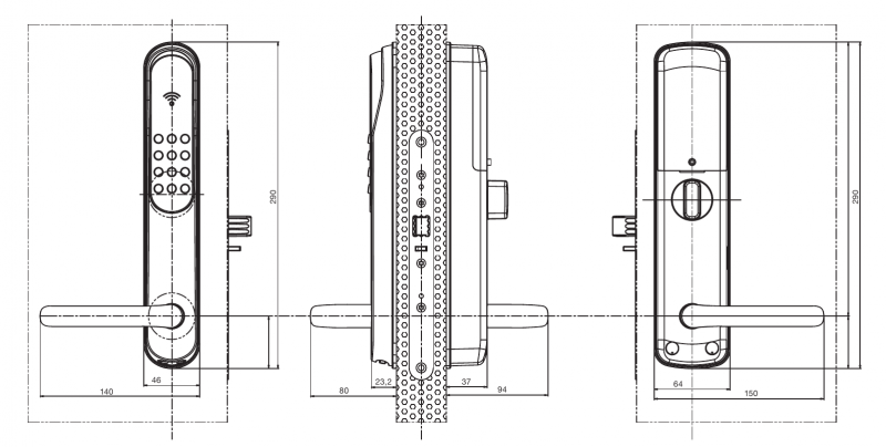 Mått utsida: (hxb) 290x46 mm, djup med handtag 80 (utan 23) mm